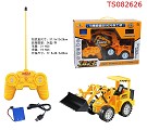 产品名称: 遥控特技灯光工程车(推土机、5通带七彩灯、配带3.6V充电电池和USB充电线)