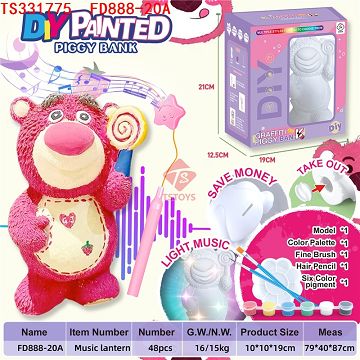 产品名称: DIY彩绘存钱罐音乐手提灯笼-草莓熊