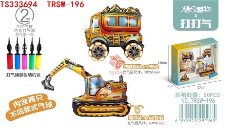 产品名称: DIY铝膜气球工程拼搭组合(内置手动打气筒1个/挖掘机铝膜气球1个/运石车铝膜气球1个)