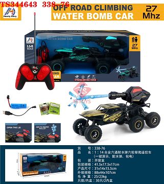 产品名称: 1:14合金六通射水弹六轮攀爬遥控车(一键演示,配水弹,包电)