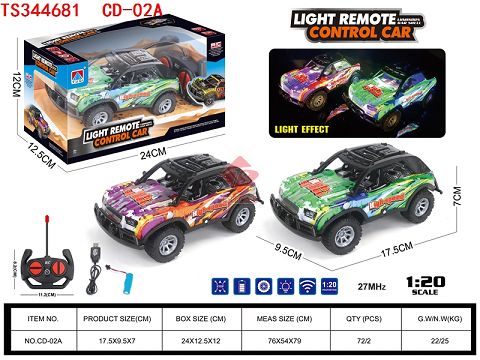 产品名称: 1:20四通灯光短卡越野遥控车