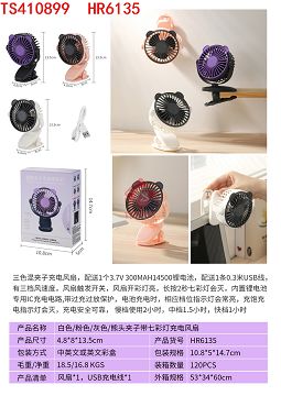 产品名称: 白色/粉色/灰色/熊头夹子带七彩灯充电风扇