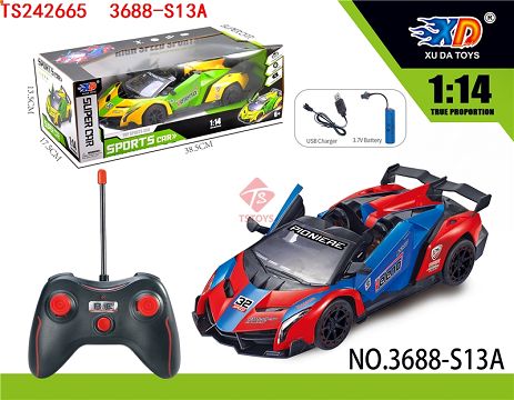 产品名称: 1:14毒药敞篷五通自动开车门遥控赛车(配牛角遥控器,带充电,带4AA充电电池)