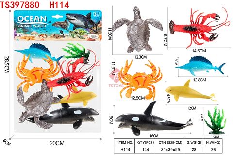 产品名称: PVC海洋动物鲸鱼海龟龙虾套装7PCS