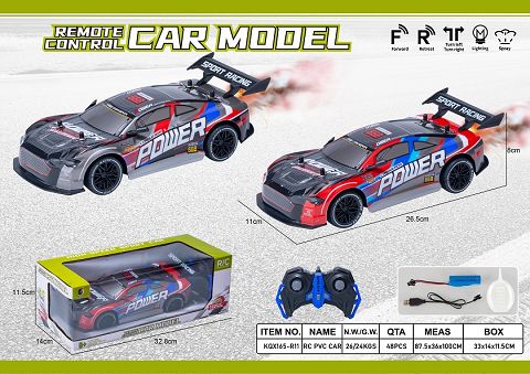 产品名称: 2.4G五通PVC壳遥控车一键喷雾1:16(灯光,包电)