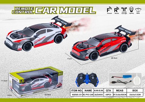 产品名称: 2.4G五通PVC壳遥控车一键喷雾1:16(灯光,包电)