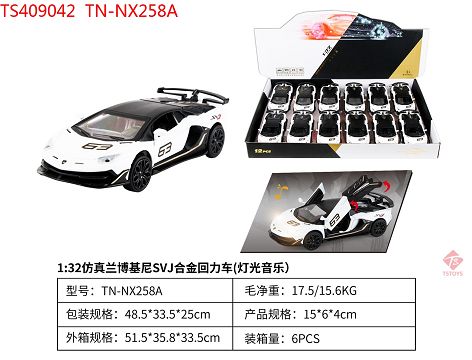 产品名称: 1:32 仿真兰博基尼SVJ合金回力车 白 12PCS