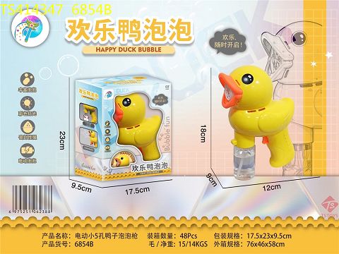 产品名称: 电动小5孔鸭子泡泡枪(配1瓶50ML泡水,4*AA不包电,)