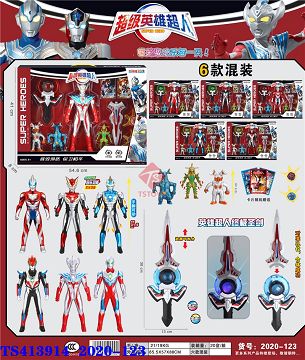 产品名称: 31.5CM超人(声光)+欧布圣剑(声光)+怪兽+卡片+水晶 6款混装