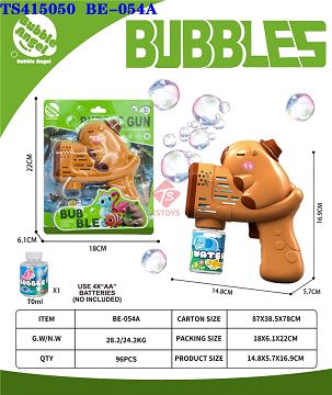 产品名称: 棕色卡皮巴拉泡泡枪带灯光5孔70ml