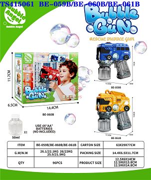 产品名称: 警察车/火警车/工程车泡泡枪带灯光5孔50ml