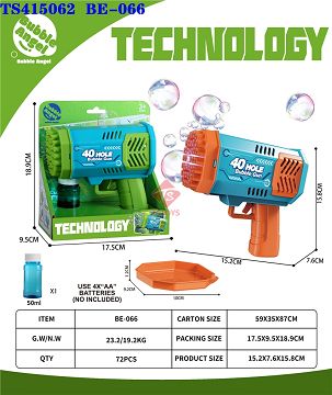 产品名称: 40孔泡泡枪带灯光2色混装50ml