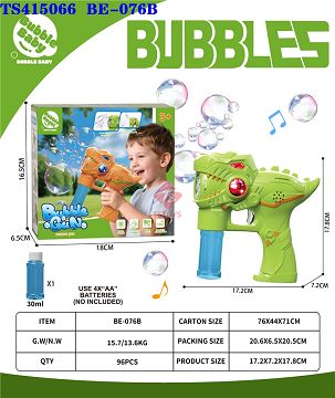 产品名称: 绿/橙恐龙款2色泡泡枪带灯光音乐5孔30ml