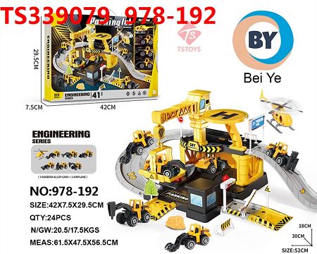 产品名称: 过家家玩具工程轨道停车套装 (3只合金小车+1只飞机)