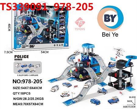 产品名称: 过家家玩具警察局轨道三层停车场加三层大楼停车套装 (6只合金小车+1只飞机)