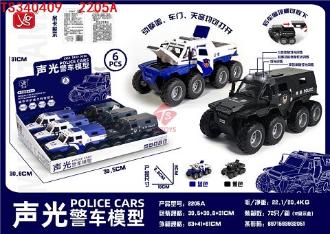 产品名称: 仿真惯性声光警车模型2色混装