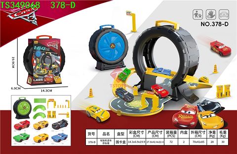 产品名称: 汽车总动员车轮胎停车场配3只滑行合金车