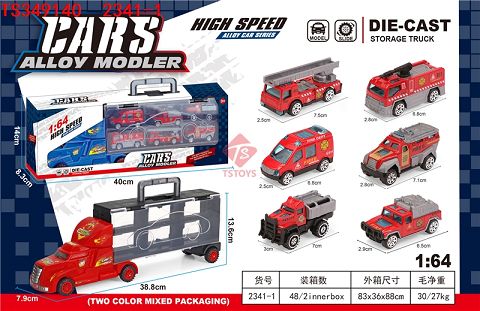 产品名称: 滑行拖头收纳车带6只合金滑行消防车