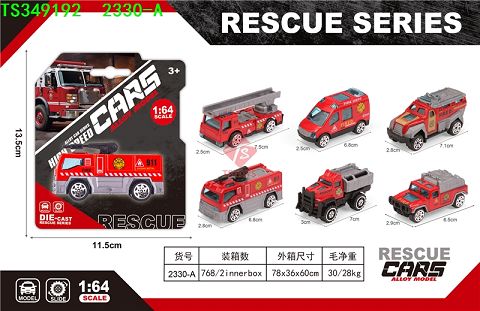 产品名称: 合金滑行消防车6款混装