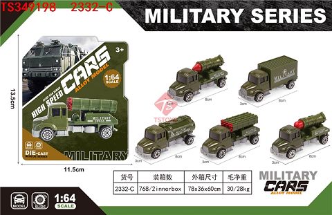 产品名称: 合金滑行长头军事车5款混装