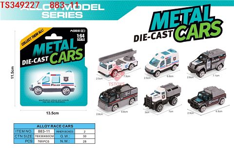 产品名称: 合金滑行警车6款混装