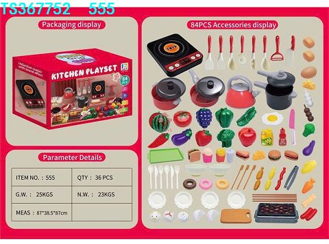 产品名称: 84件套厨房玩具-大红色