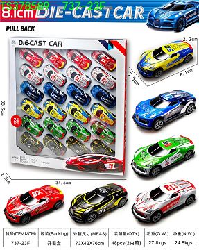 产品名称: 合金回力车开窗盒24只装(8.1cm)