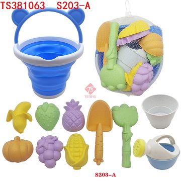 产品名称: 沙滩玩具蓝色熊耳朵圆桶套装(11件套) 1只折叠桶+10个部件
