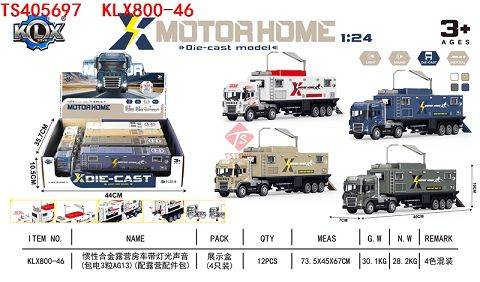 产品名称: 惯性合金露营房车带灯光声音 (包电3粒AG13)(配露营配件包)4pcs/盒