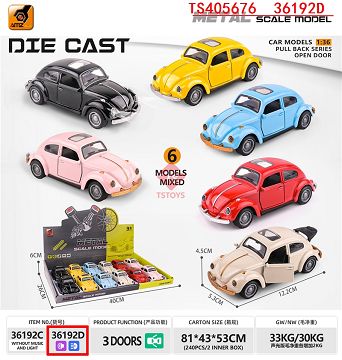 产品名称: 合金车模甲壳虫回力三开门声光(1:36)
