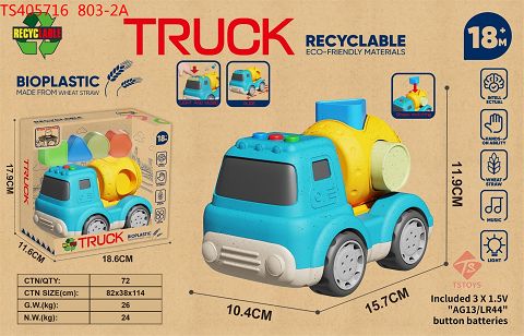 产品名称: 麦秆料卡通滑行积木配对搅拌车(带灯光音乐)