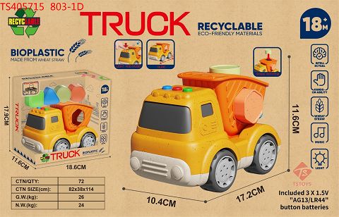 产品名称: 麦秆料卡通滑行积木配对翻斗车(带灯光音乐)