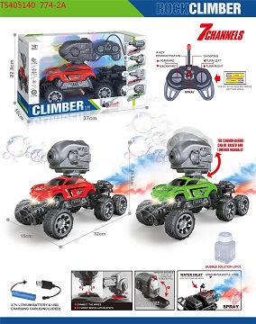 27MHz1:16七通带喷雾灯光、射泡泡、自动演示功能6轮遥控攀爬车(包电)红、绿2色混装