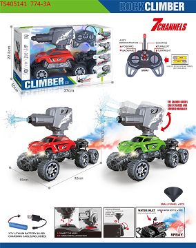 产品名称: 27MHz1:16七通带喷雾灯光、射水、自动演示功能6轮遥控攀爬车(包电)红、绿2色混装