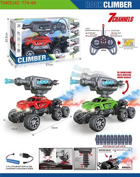 27MHz1:16七通带喷雾灯光、射软弹、自动演示功能6轮遥控攀爬车(包电)红、绿2色混装