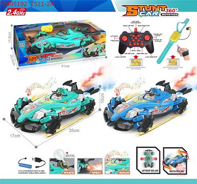 2.4G 1:12十三通双遥控带喷雾、灯光、音乐、360度旋转全方位侧行漂移方程特技车(包电)蓝、绿2色混装