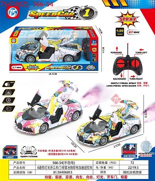 产品名称: 六通带灯光开三车门喷雾水转印布加迪遥控车