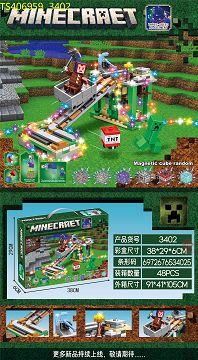 产品名称: 新款我的世界矿车寻宝大战319PCS配磁力方块积木人仔磁力腿闪光灯条三挡变换