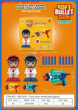产品名称: 手拉软弹科技枪(2色混装+1个人偶)