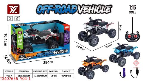 产品名称: 1:16四通遥控越野摩托车(3.7V,500mA锂电池+USB充电线)