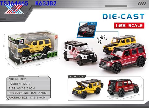 产品名称: 1:28 合金车模 奔驰大G 灯光音乐 五开门 回力(1只装)