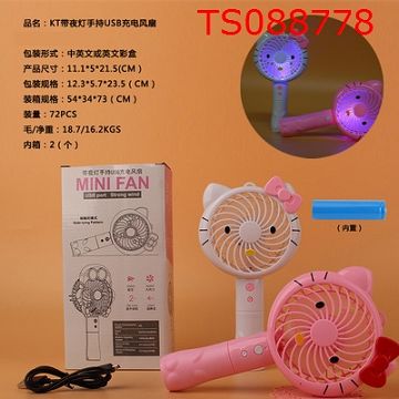 产品名称: KT带夜灯手持USB充电风扇