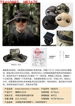 产品名称: 4色15公分帽檐渔夫帽充太阳能充电风扇(2个太阳能风扇头)