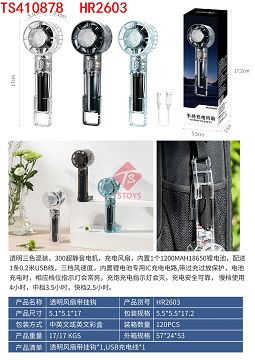产品名称: 透明无色/浅蓝/浅黑充电风扇