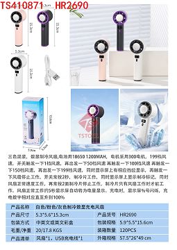 产品名称: 白色/粉色/灰色制冷数显充电风扇