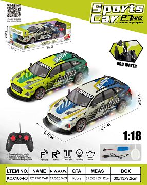 产品名称: 1:18五通奥迪赛车带灯光喷雾包电