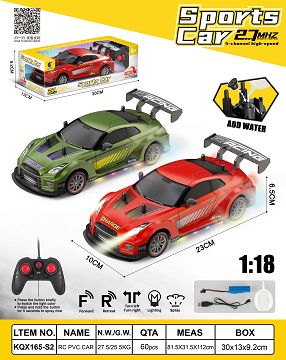 产品名称: 1:18五通GTR仿真车带灯光喷雾包电