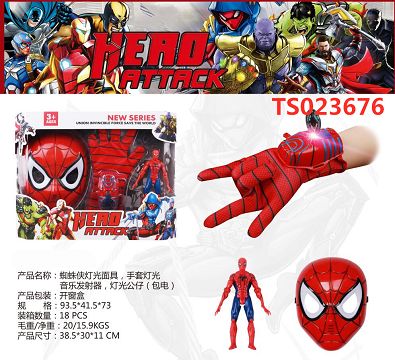 产品名称: 英雄系列:蜘蛛侠灯光面具,手套灯光音乐发射器,灯光公仔(包电)