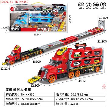 产品名称: 灯光音乐收纳变形弹射货柜卡车配合金赛车系列 2色混