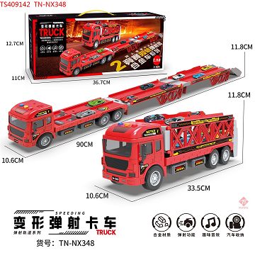 产品名称: 声光变形折叠弹射大卡车(红)+6只合金车